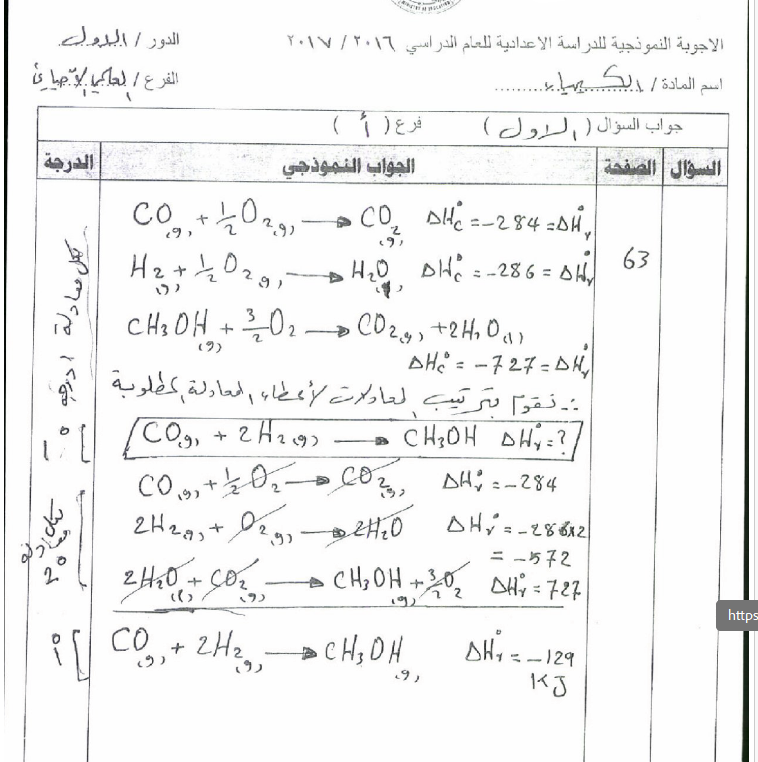 وزاريات الفصل الأول : الثرموداينمك "الكيمياء6"